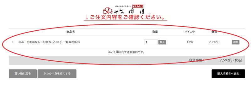 お買い物内容が正しければ、下記の「購入手続きへ進む」をクリックしてお客様情報入力画面にお進み下さい。